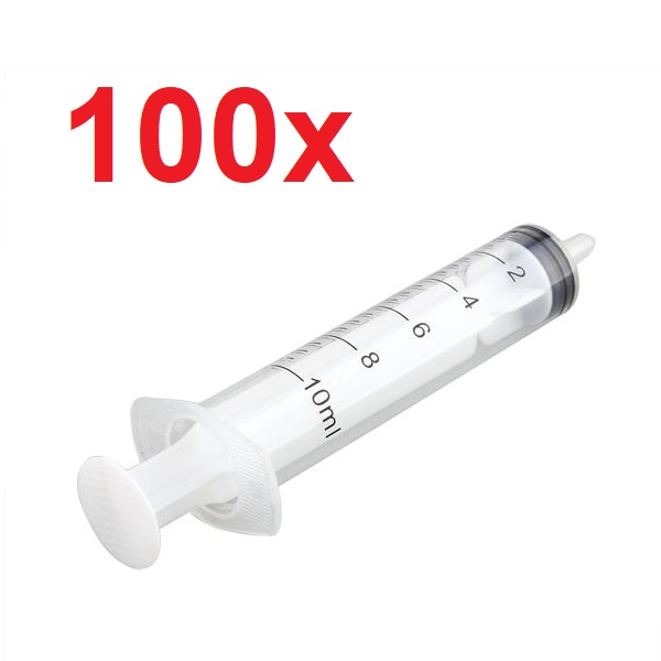 100x Disposable 10mL Syringe Luer Slip Tip Liquid Clear Plastic Sterile Tube