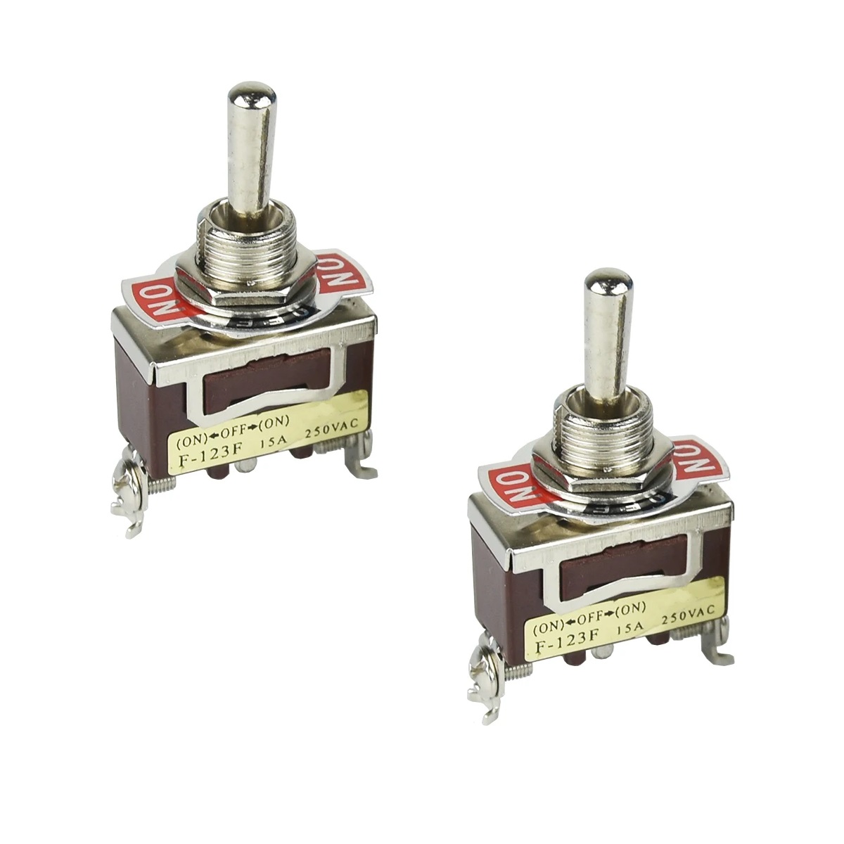 • (2) 3-Pin Position ON-OFF-ON Spring Return Momentary Metal Toggle Switch 15A 250V AC