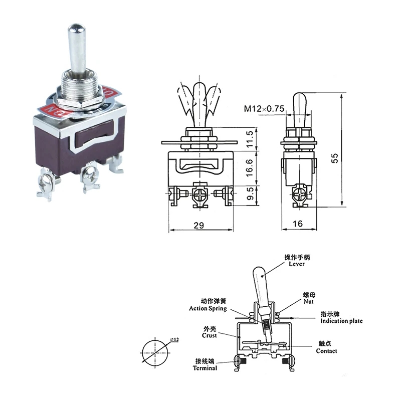 • Switch type: Spring Return Momentary - ON only when held in position.