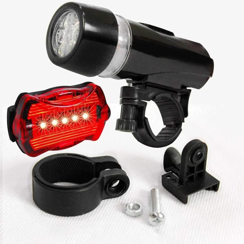 Bike Headlight Tail Light Combo 5-LED Red Back Rear Flashing AAA Battery Powered